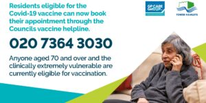 Do you know anyone aged over 70 or clinically extremely vulnerable? Residents who are elegible can use the Tower Hamlets helpline to help at-risk Tower Hamlets residents book their covid …